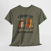 Lime green t-shirt with humorous text design on a white background